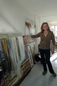 彼女の作品をたくさん見るのははじめてでした。学校では全く先生に徹しているから、どんな作品をつくるアーティストなのかなぁ、とずっと創造を膨らませていた。豪快に笑ったり、踊ったり、目が合えば手を握りながらユーモアと愛情で包まれた言葉をかける大きな女性。面白いことがすき。怒るときは腹の底から怒る。そしてまたぱっと笑う。そして作品はその大地のような彼女の雰囲気そのものだった。好んで着ているセータの若草色が絵にも登場している。筆の勢いがそのままキャンパスの上で踊っていて、透きとおった空気が流れている絵。香りのする絵。