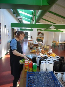 デンマーク人の生徒は手慣れたもの、美しくパンに山盛り具を載せてsmørrebrødをつくる。