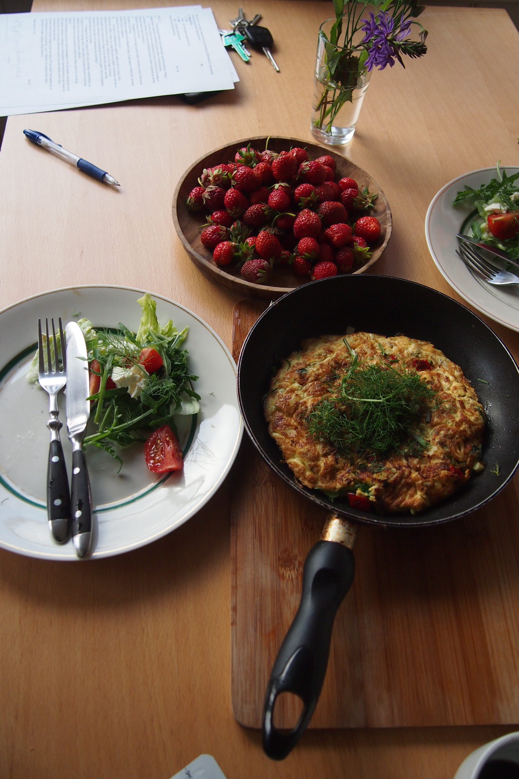Leneスタイルのオムレツとサラダといちご。