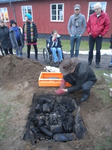 一日おいてその次の日の朝の集会(morgensameという朝の集まり。8時半から始まっていつもはまず歌を先生のオルガン伴奏で一曲歌い、それから先生または生徒のうちの誰かが発表したり、映像を見たり、ときにはドッジボールをしたりする時間がある)でみんなで外に出て、焼き上がりをお披露目した。