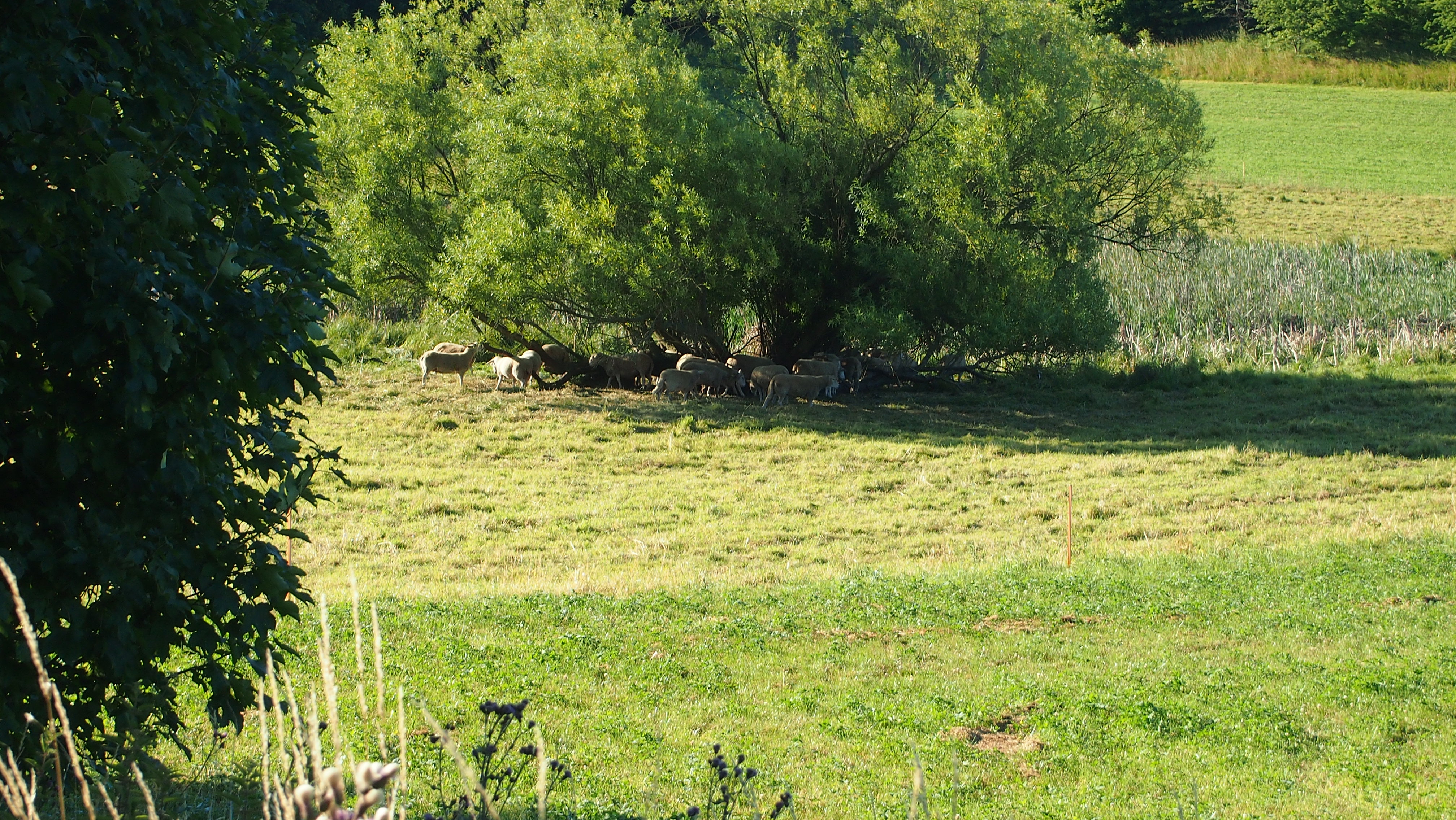 朝の羊たちが木の周りにつどうのを横目で見ながら
